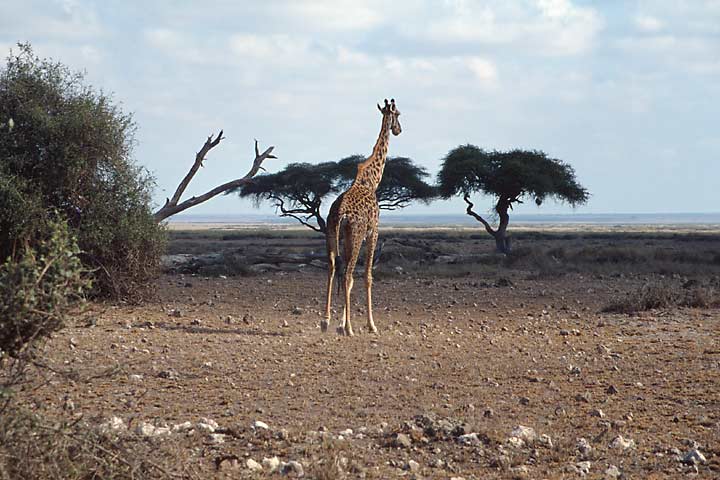 Gerne hätte ich diese Giraffe mit dem Kibo im Hintergrund fotografiert. Doch der verschwand viel zu früh im Dunst..