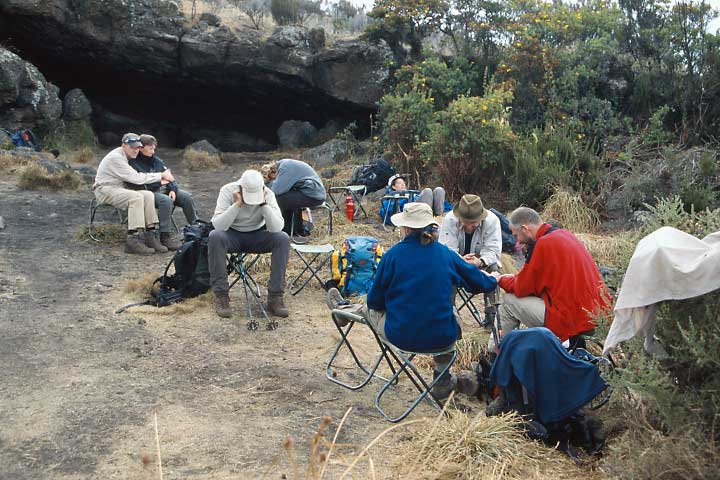 Rast bei der 2. Höhle. Reiner Luxus, aber angenehm: Die von der Begleitmannschaft mitgeschleppten Campinghocker.