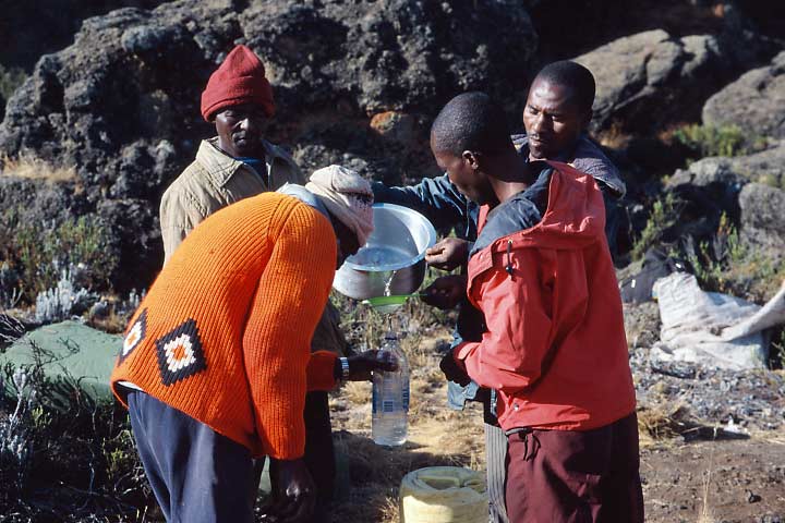 Mühsam herbeigeschafft werden musste das Wasser, das hier nach dem Abkochen (und Abkühlen) in unsere Flaschen gefüllt wird.