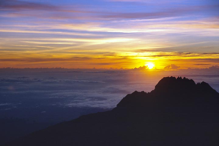Noch bevor wir den Gilman's Point erreichen, geht über dem Mawenzi die Sonne auf.