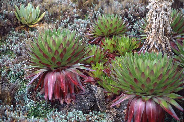 Oberhalb des Thego River Camps geht es in einer Höhe von fast 4000 m durch herrliche Lobelienbestände.