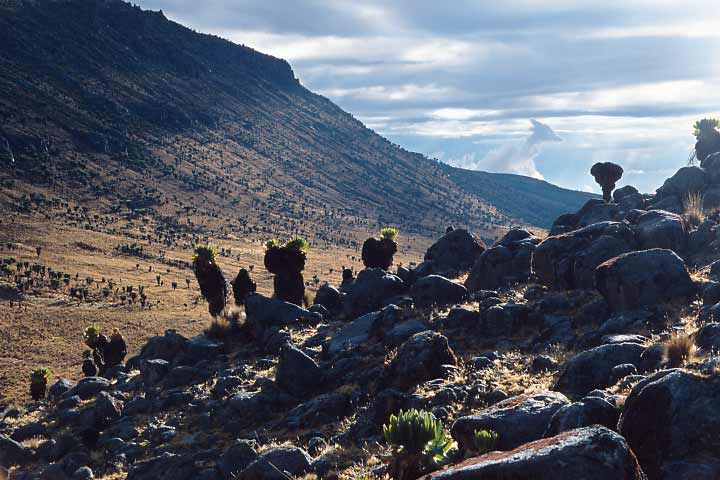 Blick von der Teleki-Hütte nach Westen. Über den Hang auf der linken Talseite führte unser Weg leicht fallend zur Hütte herüber.