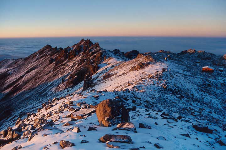 Aufstieg von der Austrian Hut (rechts am Bildrand) zum Lenana Gipfel.