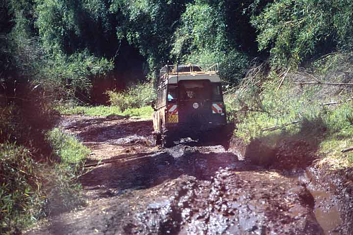 "Schlammlöcher, groß genug um Kühlschränke darin zu versenken." Auf der Landroverfahrt nach Chogoria