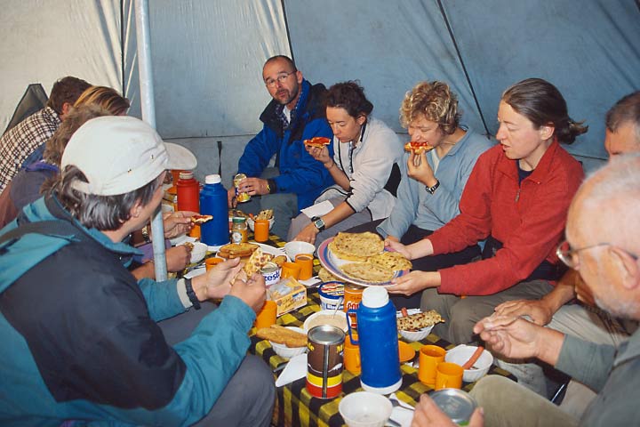 Das letzte Frühstück im Zelt, vor unserem Abstieg über