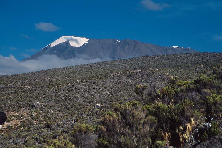 Ein letzter Blick zum Kibo, kurz nach dem Abmarsch von den Horombo Hütten.